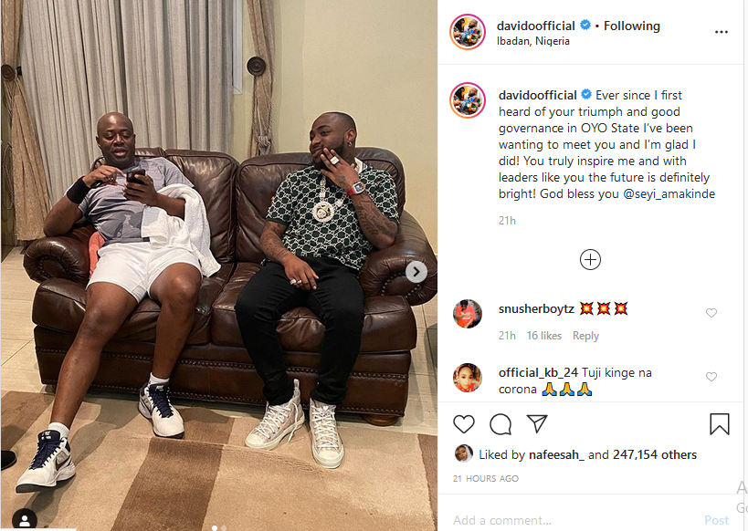 A check on Davido’s Instagram page showed that the artiste visited Governor Seyi Makinde on Saturday before the show.